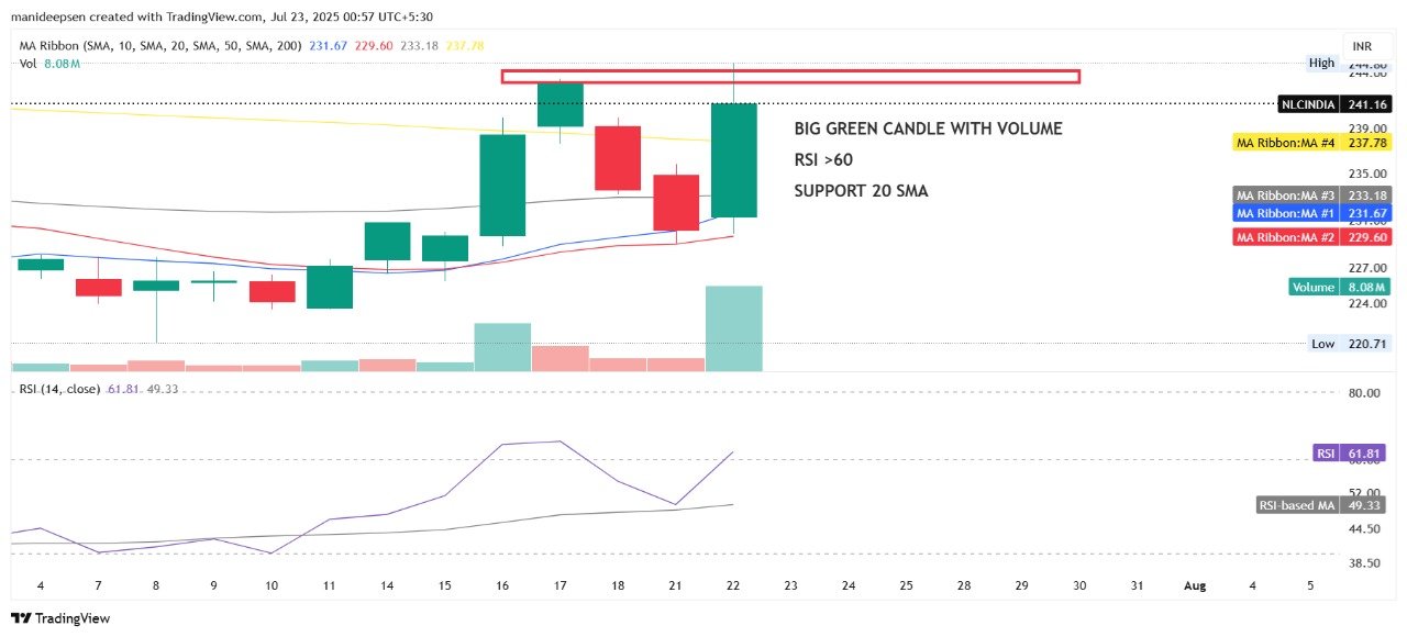 NLC India Ltd is showing all signs of a bullish revival. From reclaiming key moving averages to RSI entering bullish territory and volumes surging alongside breakout candles, this stock is now back on the radar of momentum traders and swing investors.